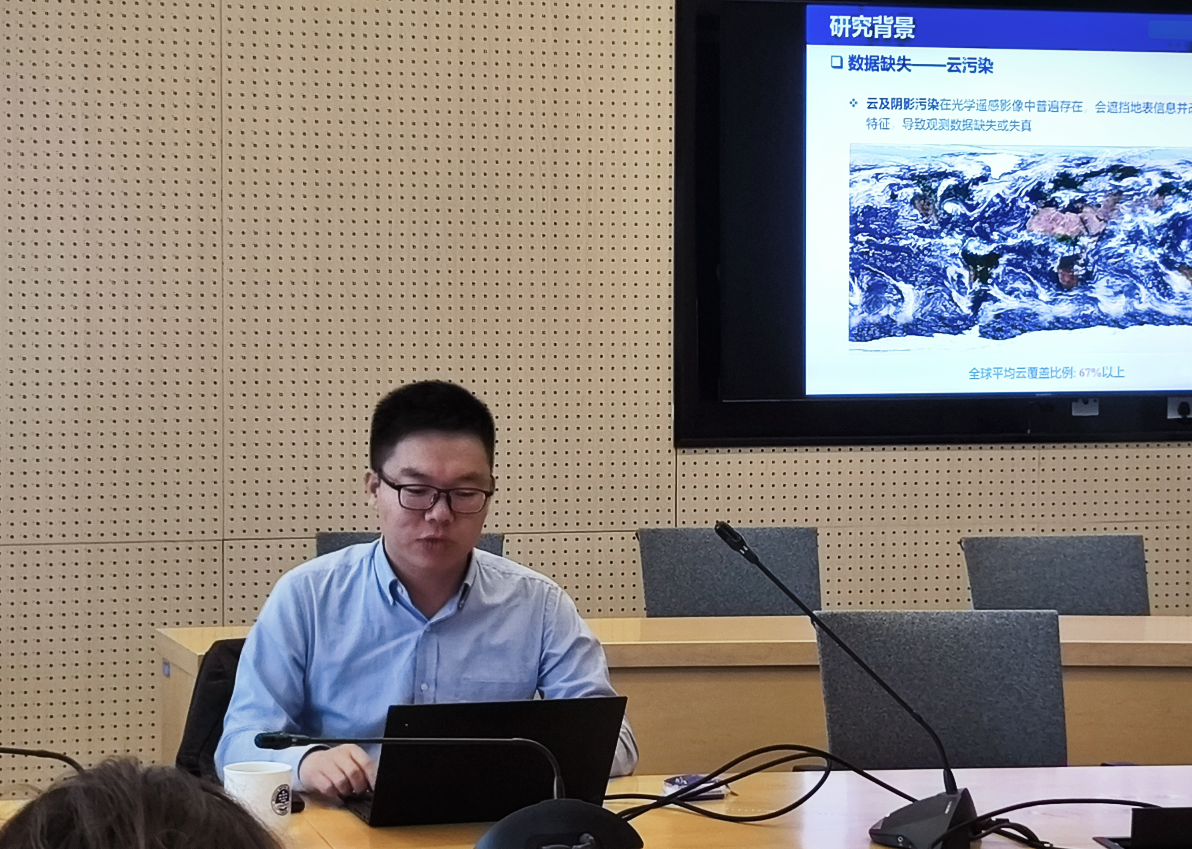 第二场报告由王群明教授主讲,题为《遥感数据融合重建与解译》。王教授直指遥感应用中的两大核心痛点——数据缺失(如云层遮挡、轨道缝隙)与空间分辨率不足。他详细讲解了其团队在发展多源遥感数据融合理论方法上的突破,如何有效实现数据的高精度“缺失重建”与“降尺度重建”,从而显著提升遥感数据的质量与应用价值。报告中展示的全球30米森林关键参数图、全国典型城市亚米级树冠图等系列成果,给在场师生留下了深刻印象。