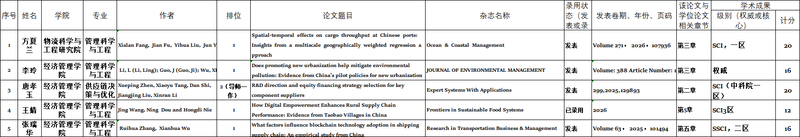 方夏兰、李玲、唐孝玉、王婧、张瑞华博士研究生预答辩学术成果公示