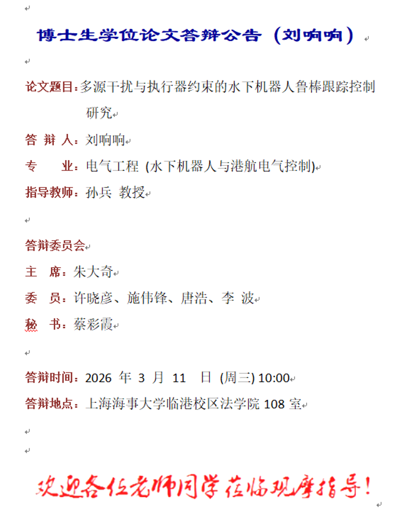 博士生学位论文答辩公告(刘响响)