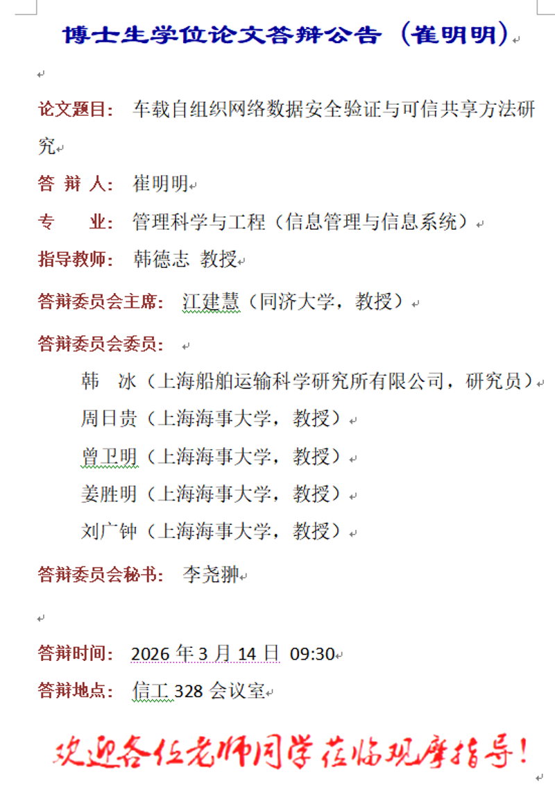 博士生学位论文答辩公告 (崔明明)
